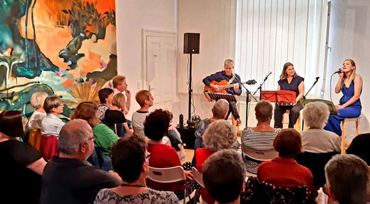 ...mit Matthias Wesche. Die Teilnehmenden treffen sich etwa alle zwei Monate zum gemeinsamen Singen. Es werden Lieder gesungen, die sich die Teilnehmenden wünschen und die Matthias Wesche vorschlägt: Songs von Folk bis Pop mit Gitarrenbegleitung. Neue Mitsängerinnen und -sänger sind jederzeit willkommen. Die Teilnahme ist auf gar keinen Fall umsonst, aber kostenfrei. Einzige Voraussetzung: Freude am Singen. In der Galerie im Brauhof 12 (über der Stadtbücherei).