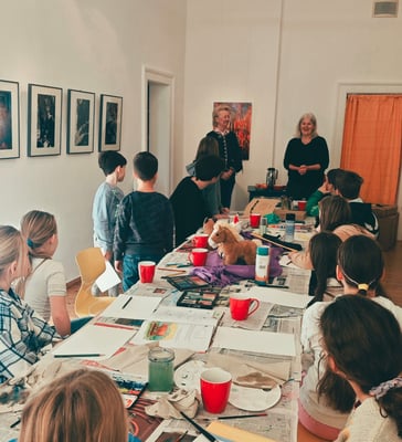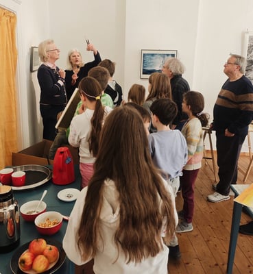 Einmal im Monat an einem Samstagvormittag treffen sich Kinder und Jugendliche in der Galerie des Kunstfördervereins Schöningen und sind mit Unterstützung von Vorstandsmitgliedern kreativ tätig. Am 22. November 2025 kam lieber Besuch. Frau Dr. Wischenbart-Backhaus – Vorsitzende der Freunde des Wolfsburger Kunstmuseums – hatte anlässlich ihres Geburtstages ihre Gäste um Spenden für die Kindermalgruppe des Kunstfördervereins Schöningen gebeten. Jetzt konnte Frau Dr. Wischenbart-Backhaus sich direkt einen Eindruck verschaffen, mit wieviel Freude und Konzentration die kleinen Künstlerinnen und Künstler bei der Sache waren.